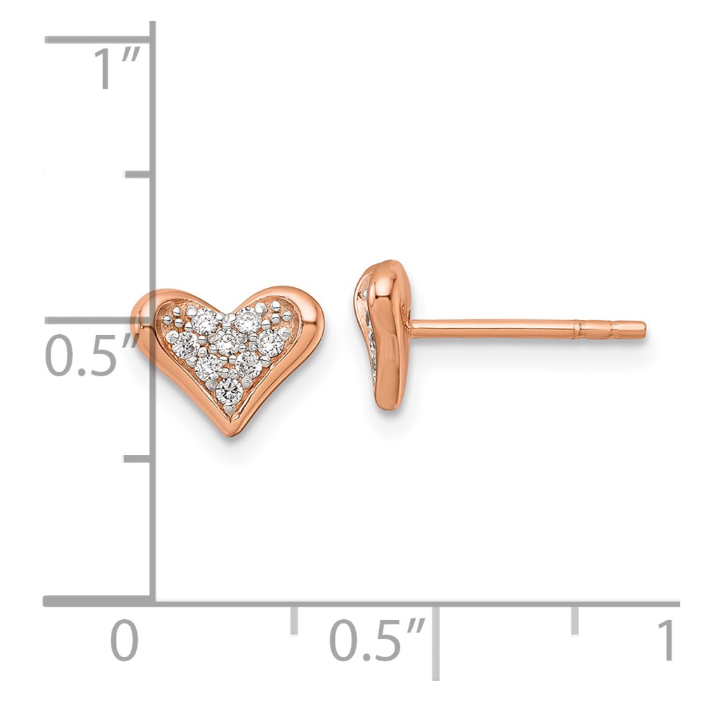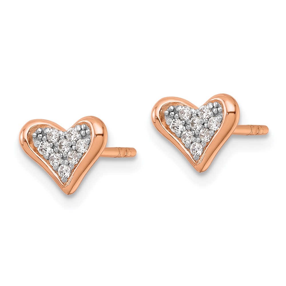 Sterling Silver Rose-tone Polished Pink & White CZ Heart Post Earrings