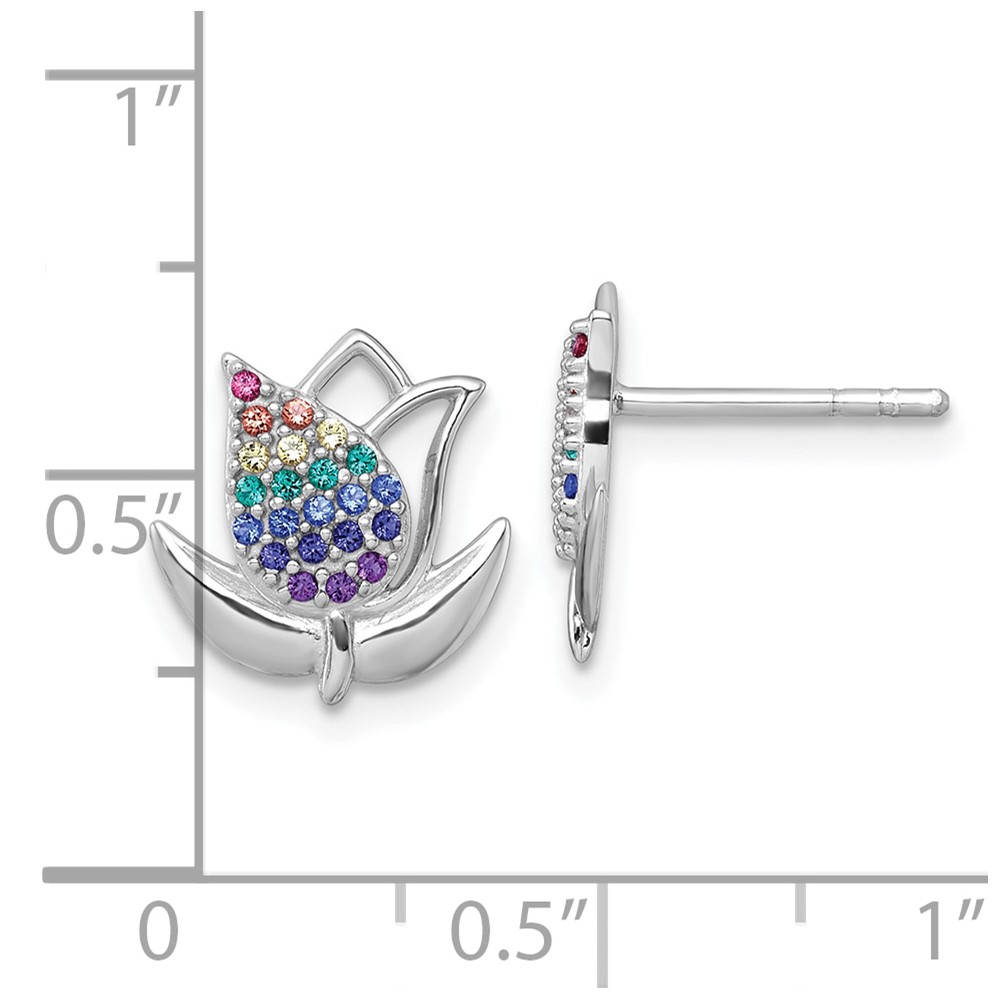 Sterling Silver Rhodium-plated Polished Rainbow Nano Crystals Tulip Post Earrings