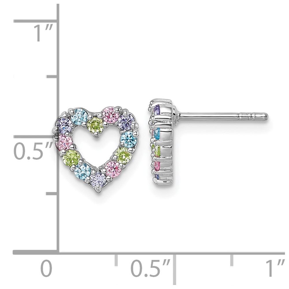 "Sterling Silver Rhodium-plated Polished Pastel Blue, Pink, Green and Purple CZ Heart Post Earrings"