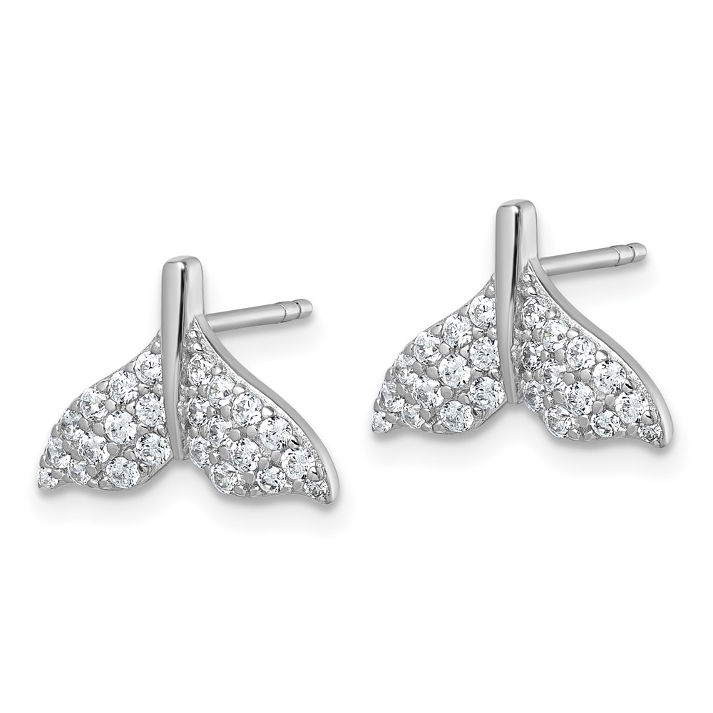 Sterling Silver Rhodium-plated CZ Whale Tail Post Earrings