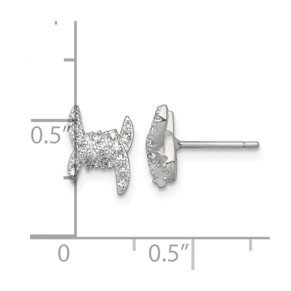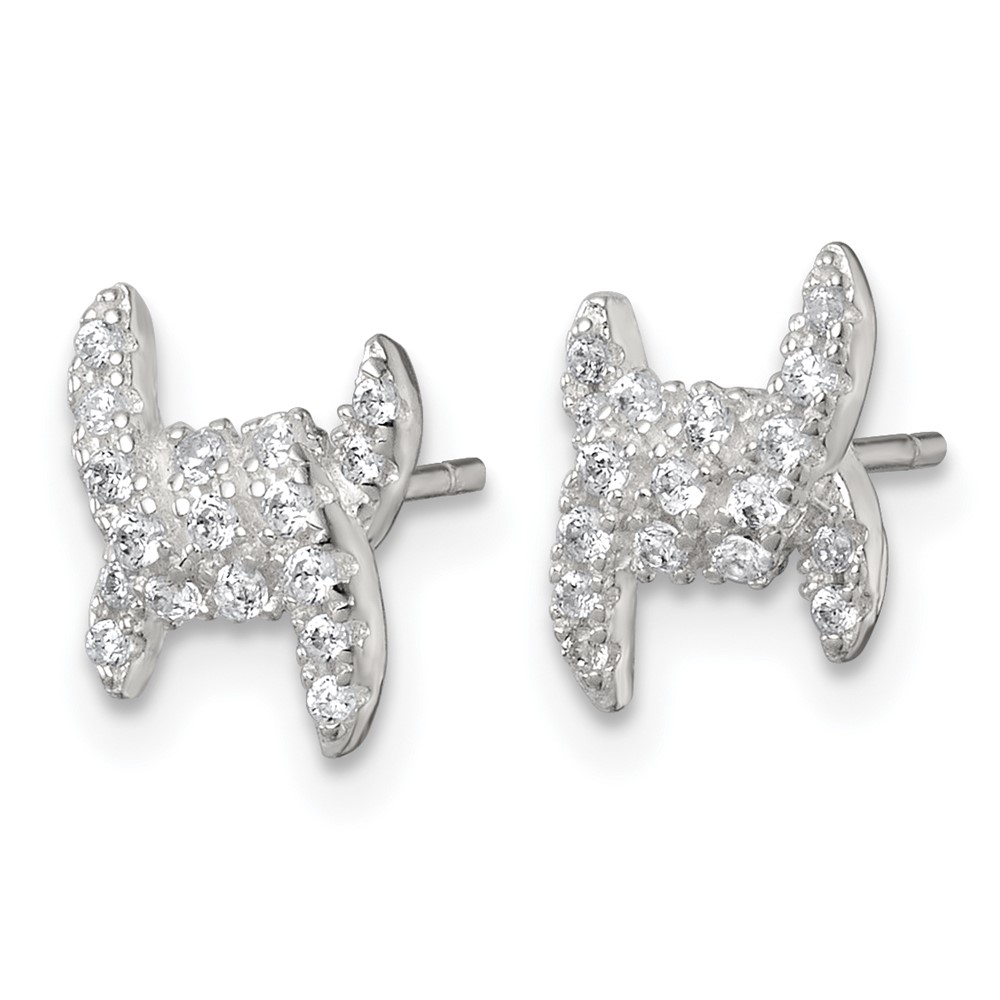 Sterling Silver Polished Fancy Ribbon CZ Post Earrings
