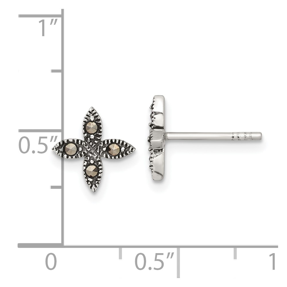 Sterling Silver Antiqued Marcasite Fancy Flower Post Earrings