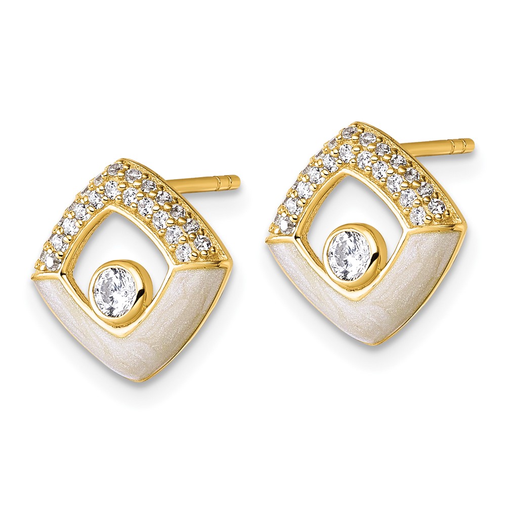 Sterling Silver Gold-tone CZ and Champagne Enamel Polished Square Post Earrings