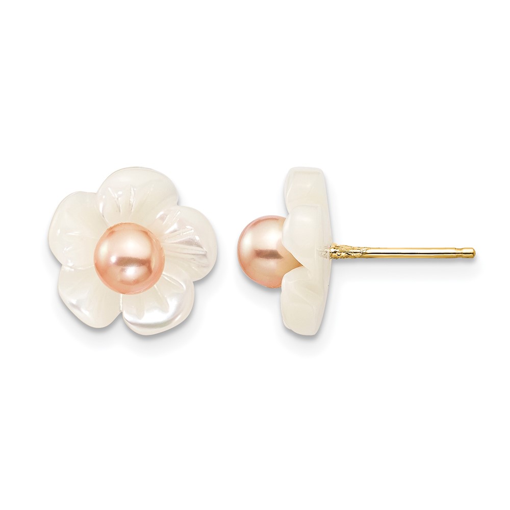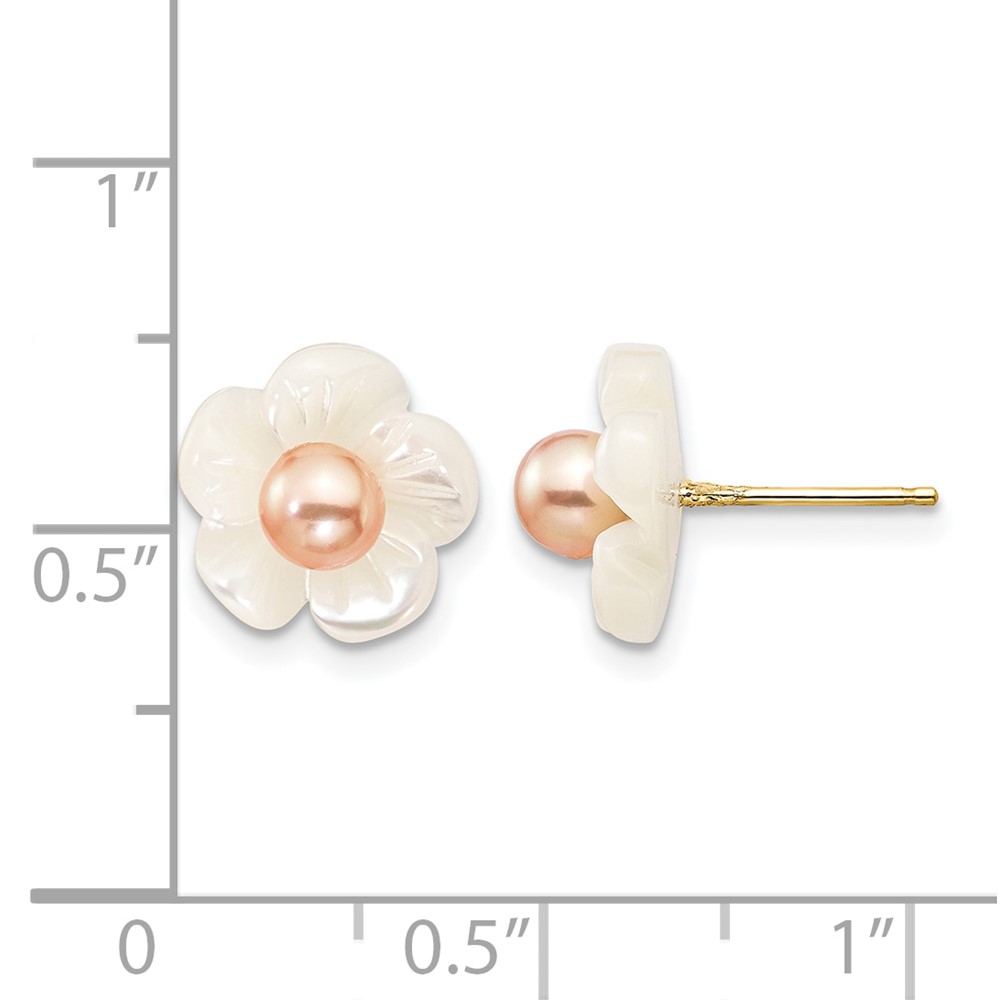 1/20 14K Gold Filled 3-4mm Pink FWC Pearl MOP Flower Post Earrings