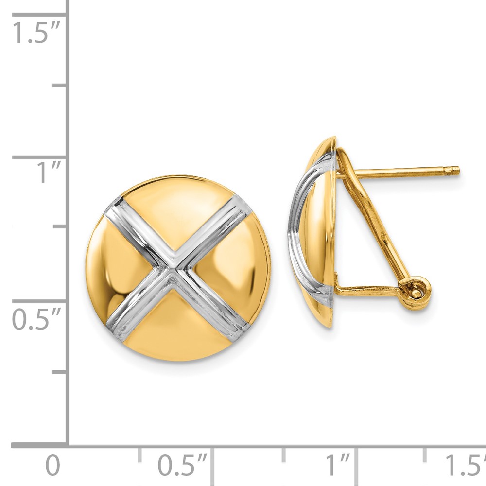 14k and White Rhodium 16mm Polished X-Circle Omega Back Post Earrings