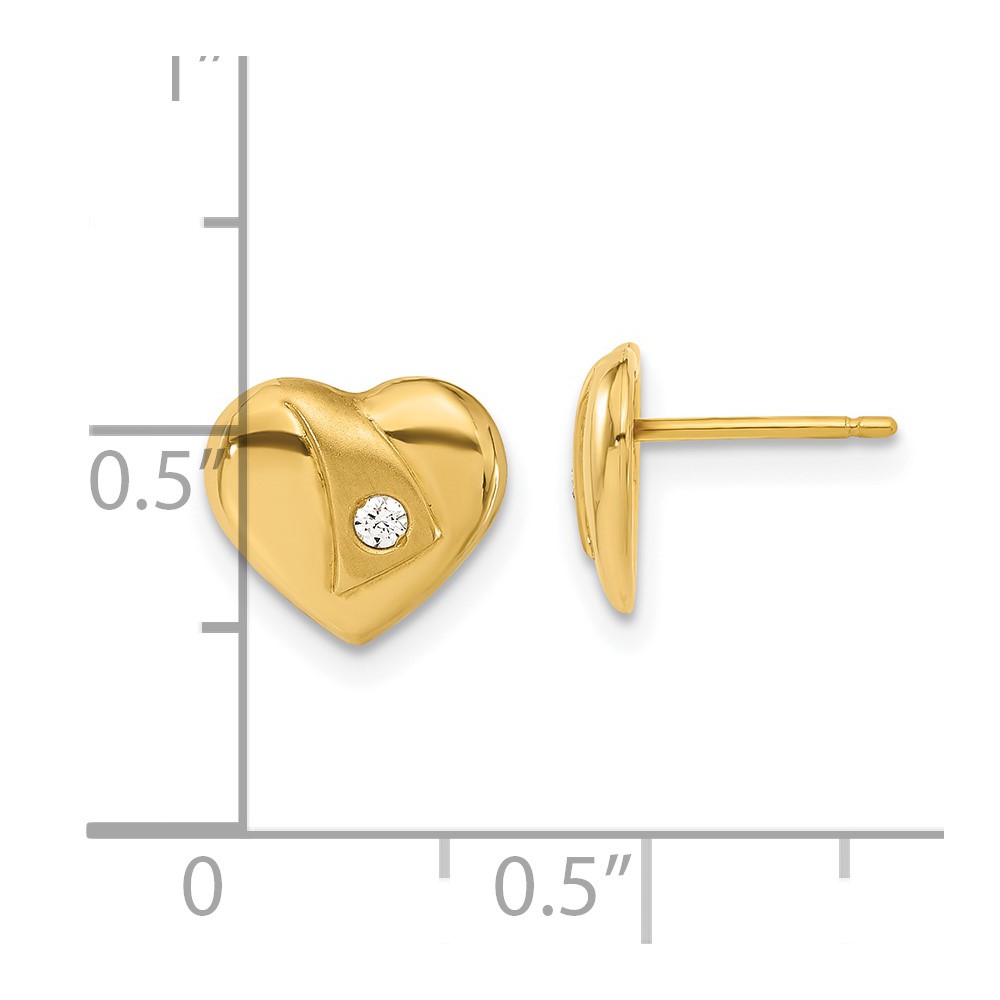 14ky Polished & Satin CZ Heart Post Earrings