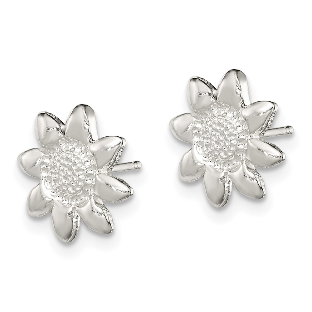 Sterling Silver Polished & Textured Sunflower Post Earrings