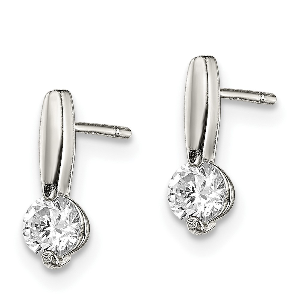 Sterling Silver Polished CZ Drop Post Earrings