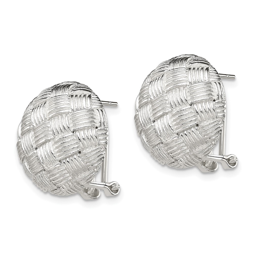 Sterling Silver Rhod-pltd Polished Woven Circle Omega Back Earrings