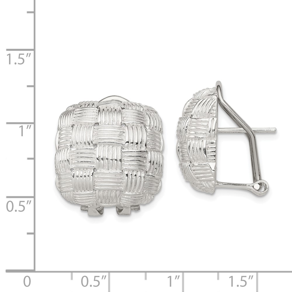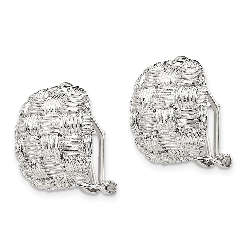 Sterling Silver Rhod-pltd Polished Woven Square Omega Back Earrings