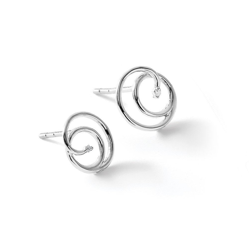 White Ice Sterling Silver Rhodium-plated Diamond Swirl Post Earrings