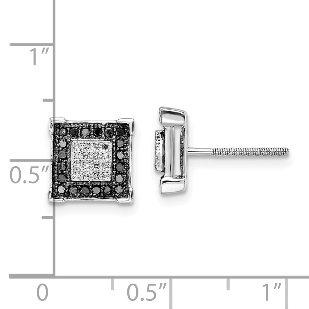 White Night Sterling Silver Rhodium-plated Black and White Diamond Square Post Earrings