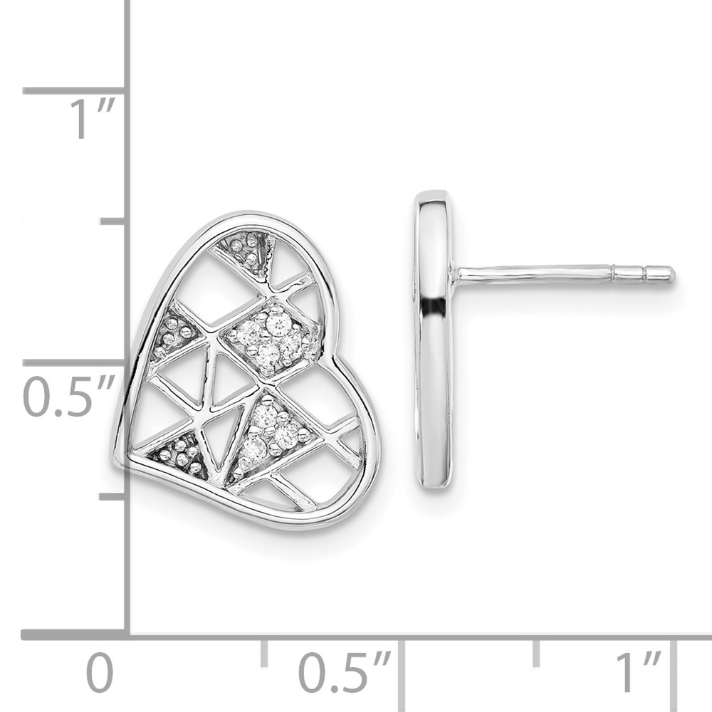 Sterling Silver Rhodium Plated CZ Heart Post Earrings