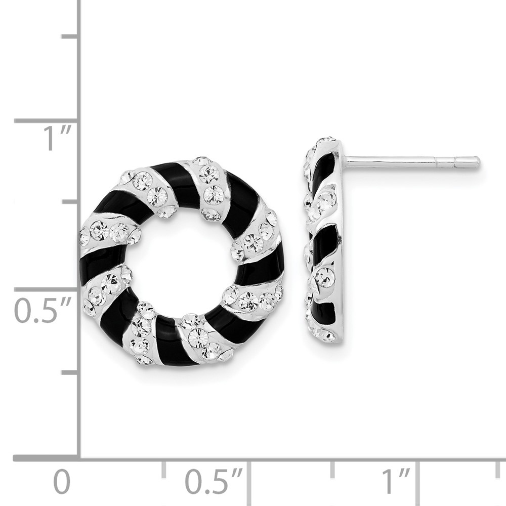 Sterling Silver Stellux Crystal & Black Enamel Open Circle Post Earrings