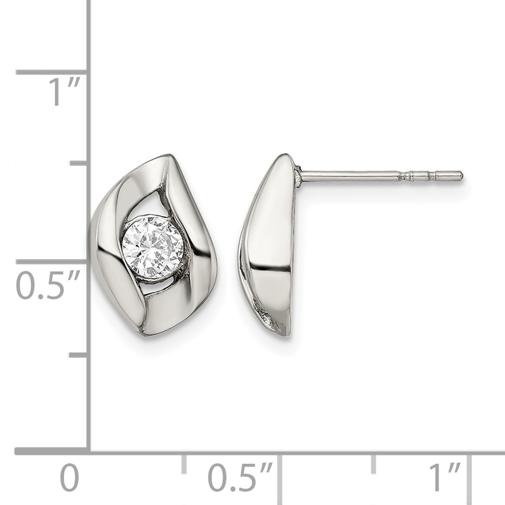 Chisel Stainless Steel Polished with CZ Post Earrings
