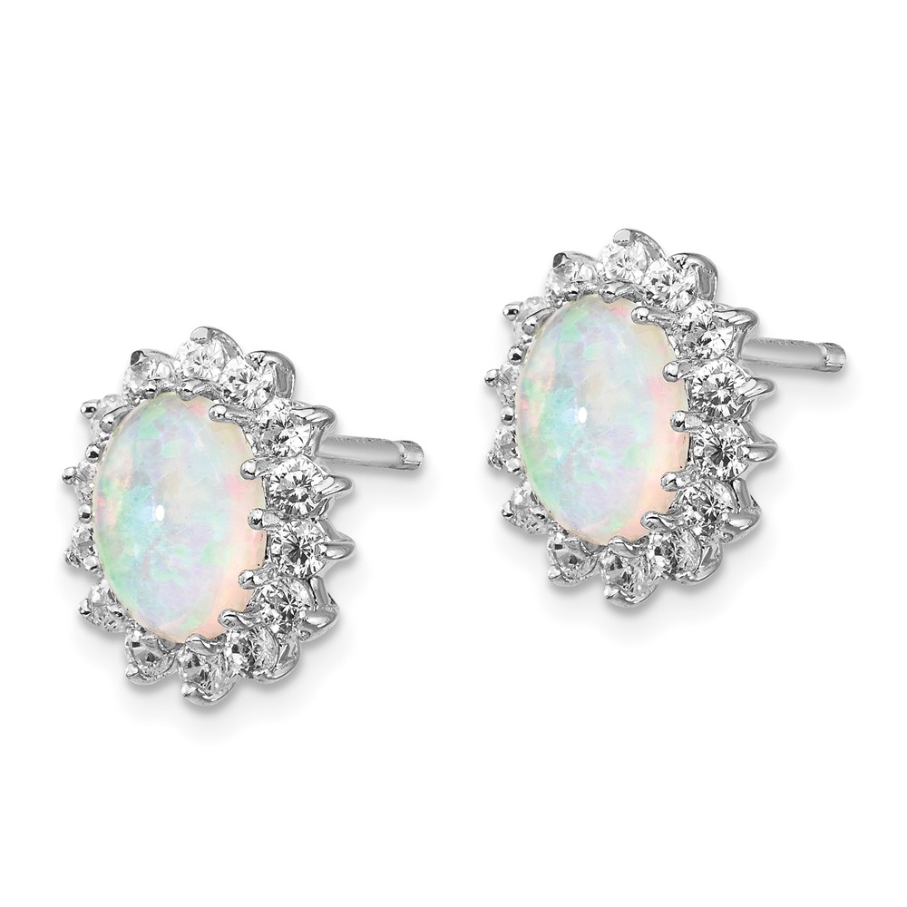 Cheryl M Sterling Silver Rhodium-plated Cabochon Lab Created Opal and Brilliant-cut CZ Oval Halo Post Earrings