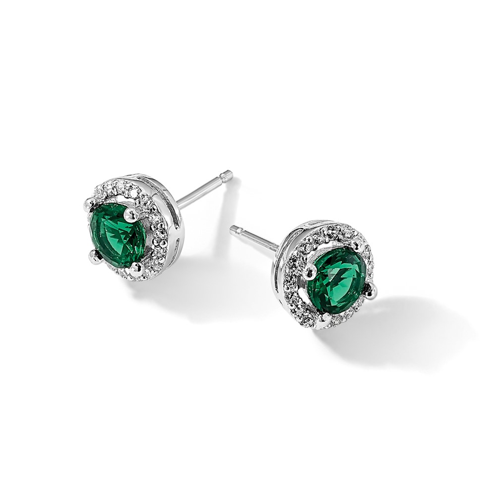 Brilliant Embers Sterling Silver Rhodium-plated 34 Stone White and Green Micro Pavé Halo CZ Post Earrings