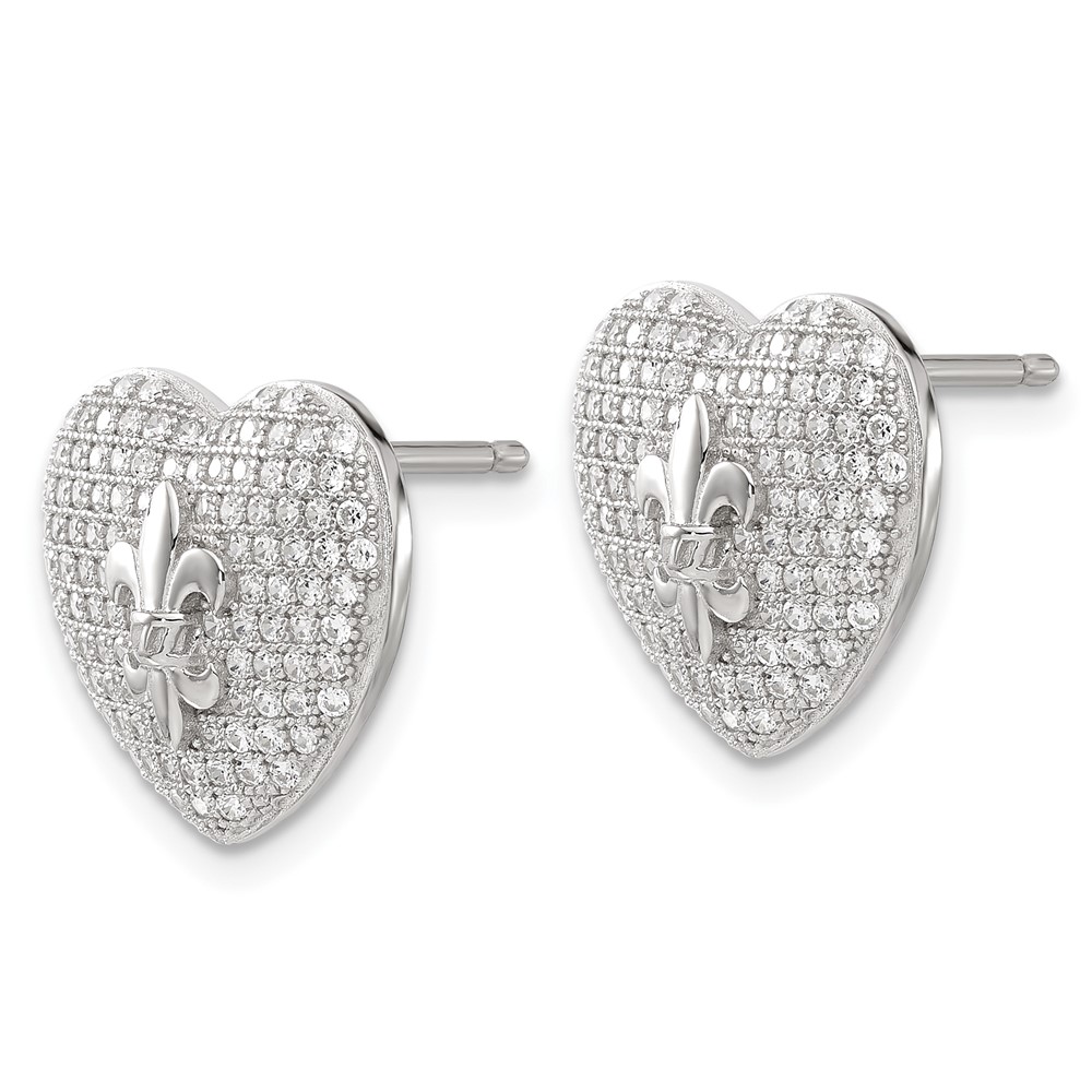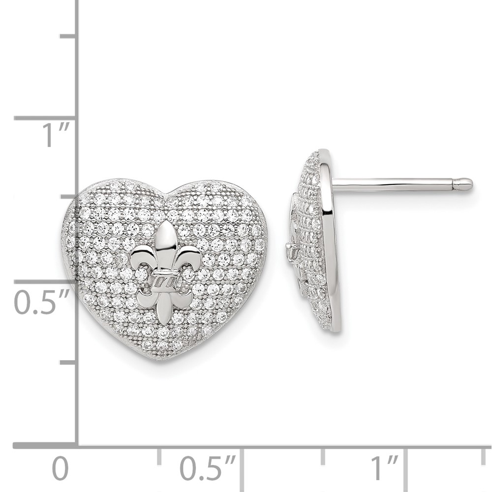 Sterling Silver CZ Heart Fleur De Lis Post Earrings