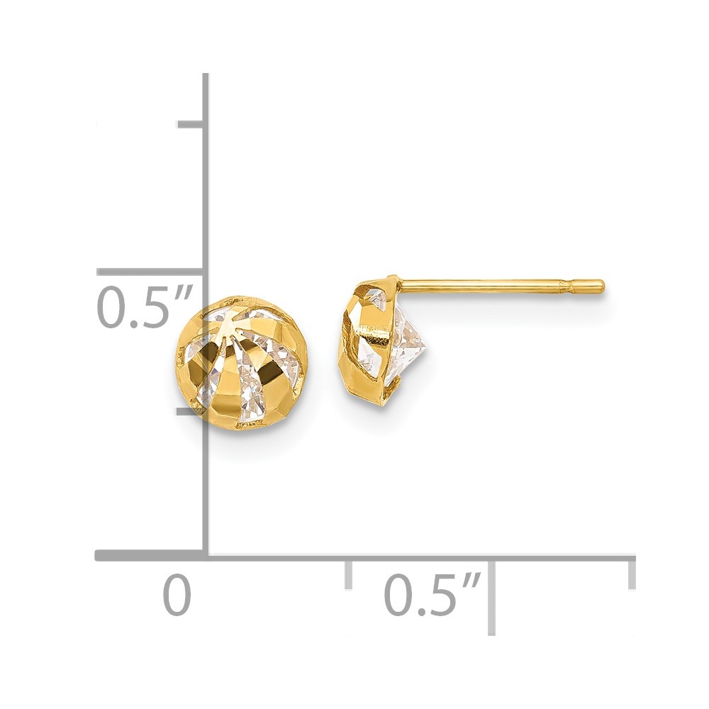 14k Madi K CZ D/C Children's Half Round Ball Post Earrings