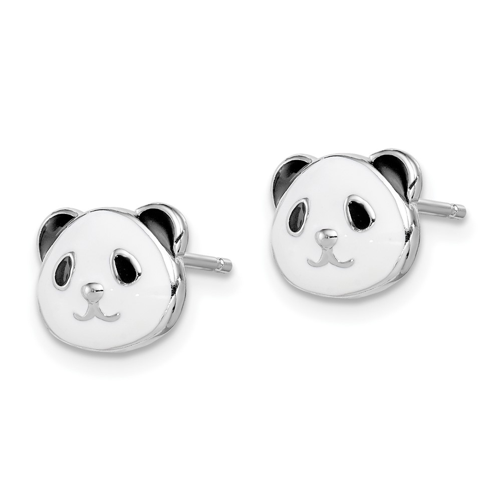 Sterling Silver Madi K Rhodium-plated Polished Black & White Enameled Panda Children's Post Earrings