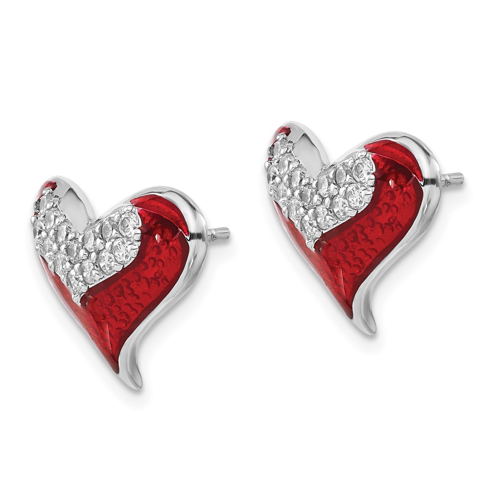 Sterling Silver Polished Red Enamel CZ Heart Post Earrings