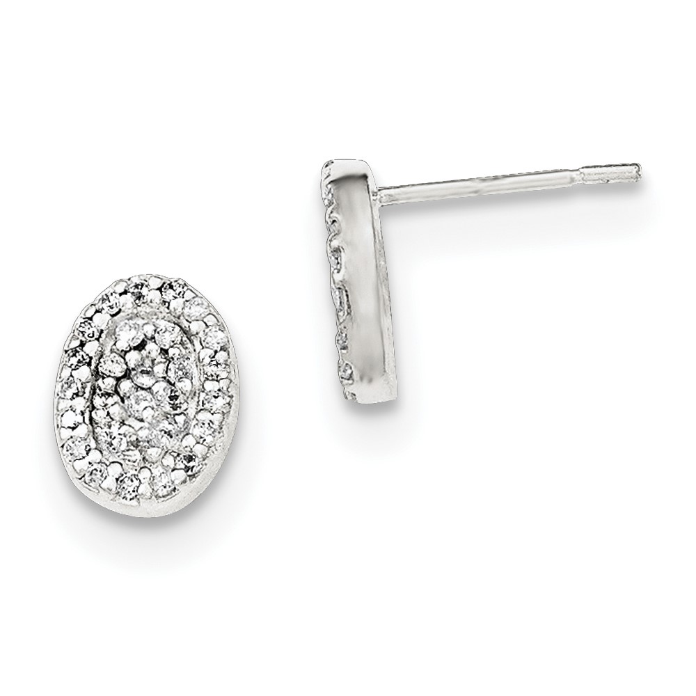 Sterling Silver Polished Oval CZ Post Earrings