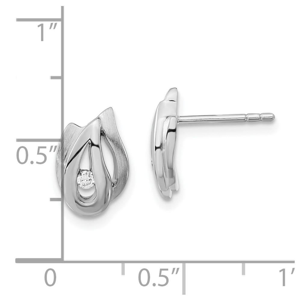 Sterling Silver Polished and Brushed CZ Post Earrings