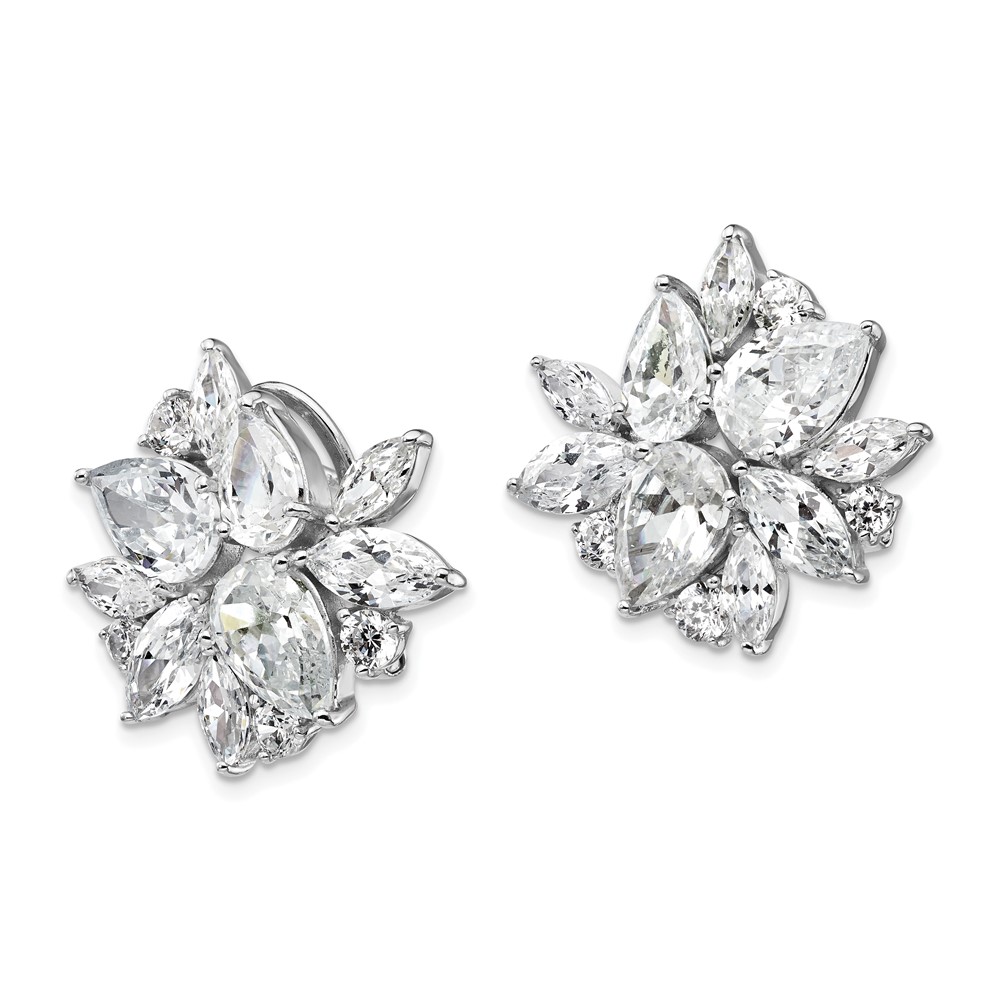 Cheryl M Sterling Silver Rhodium-plated Brilliant-cut & Marquise-cut CZ Cluster Post Omega Back Earrings