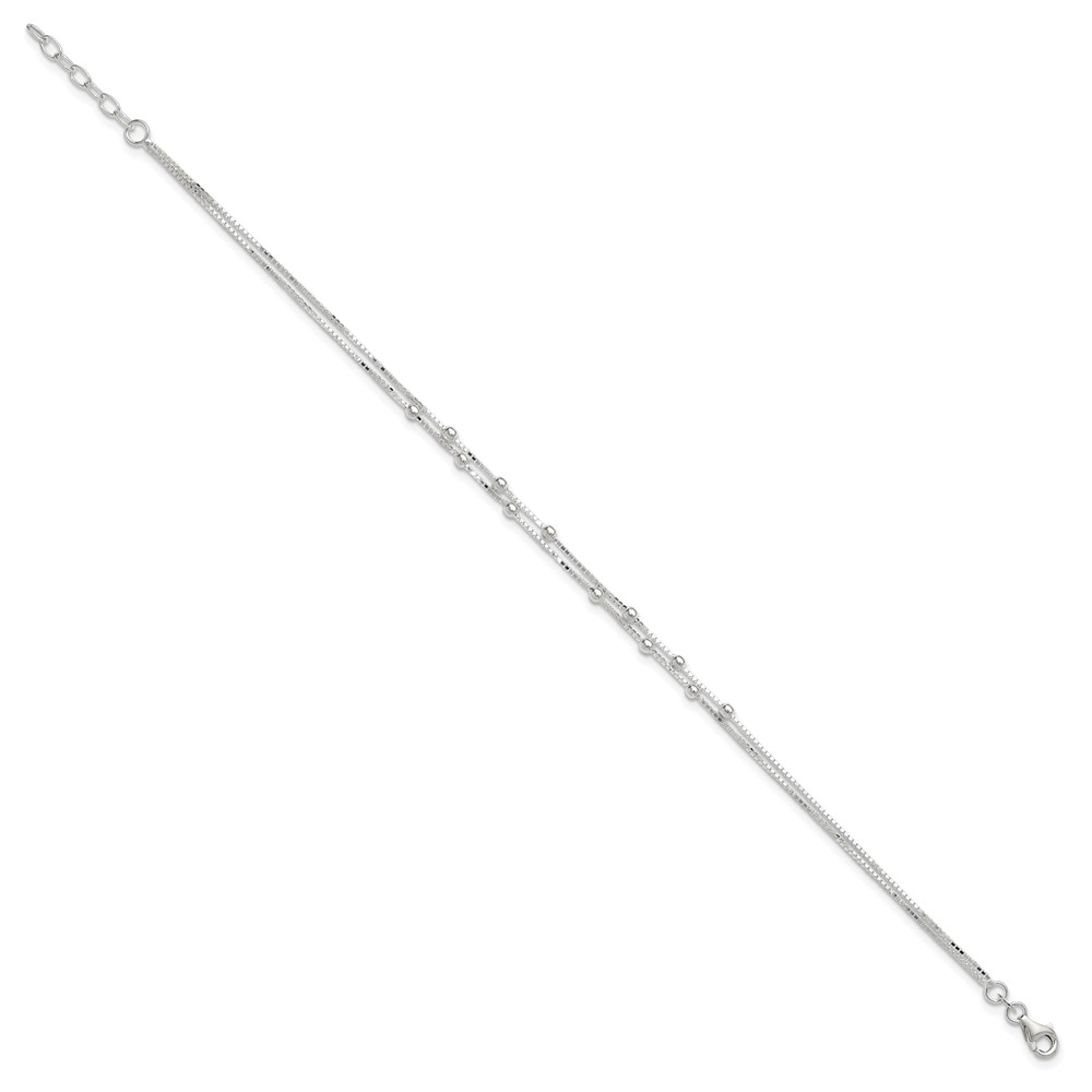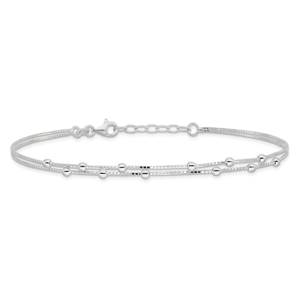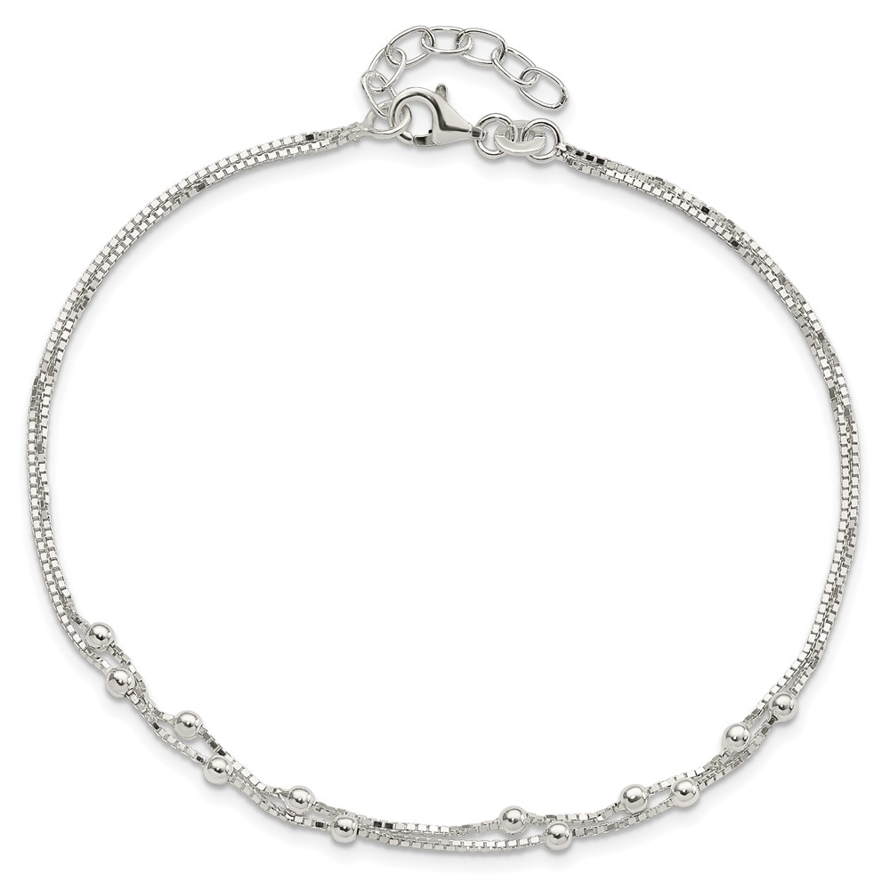 Sterling Silver Beaded 2-strand 9 inch Plus 1 inch Extender - Total 10 inch Anklet