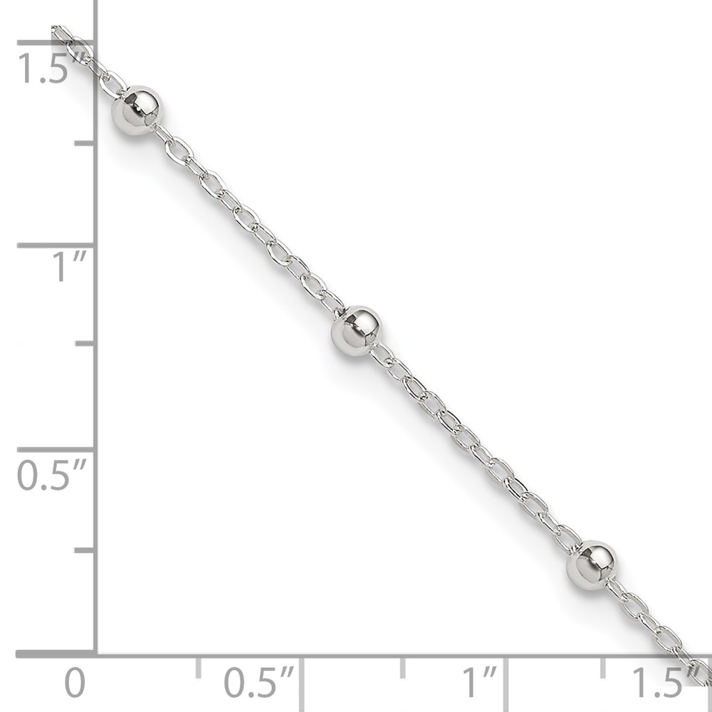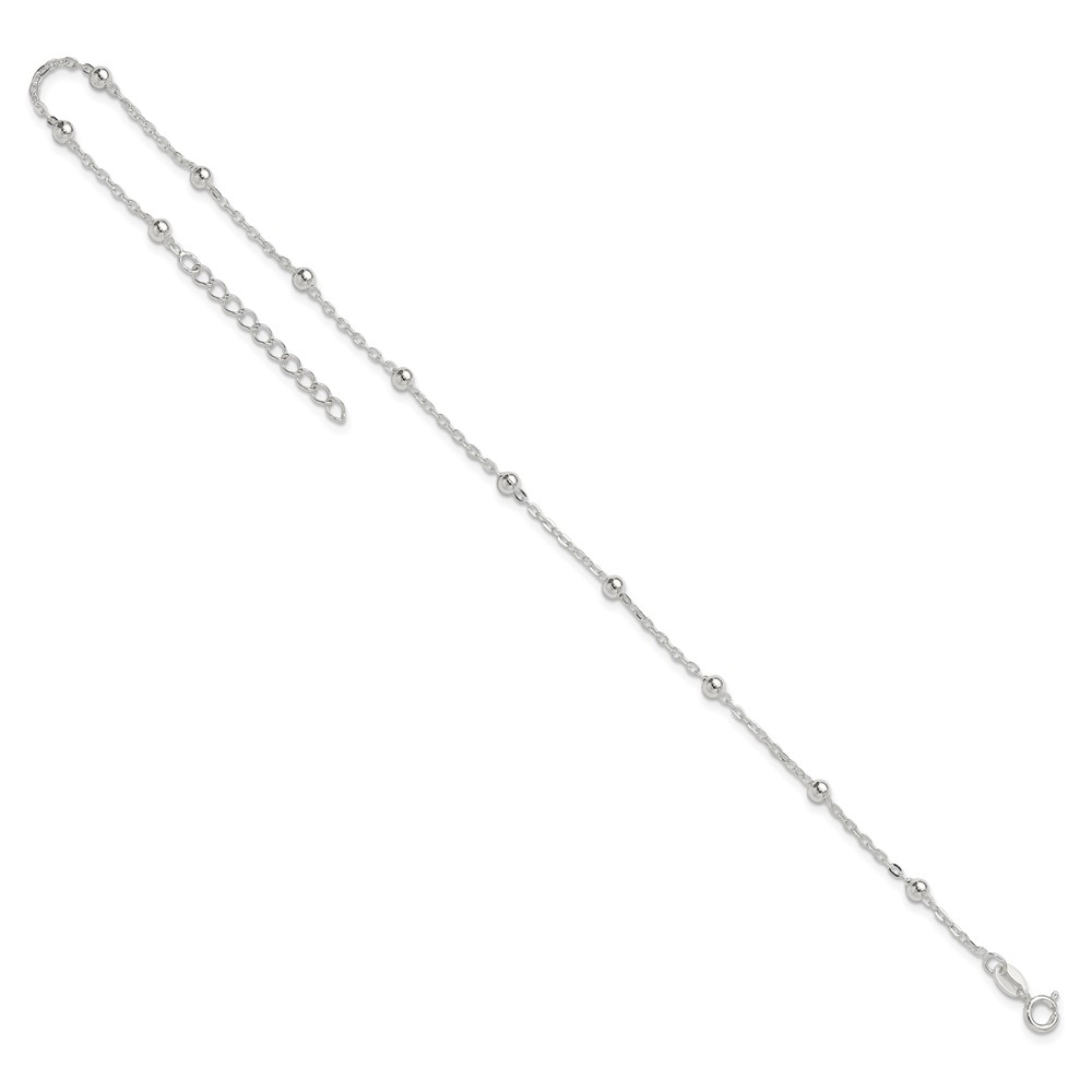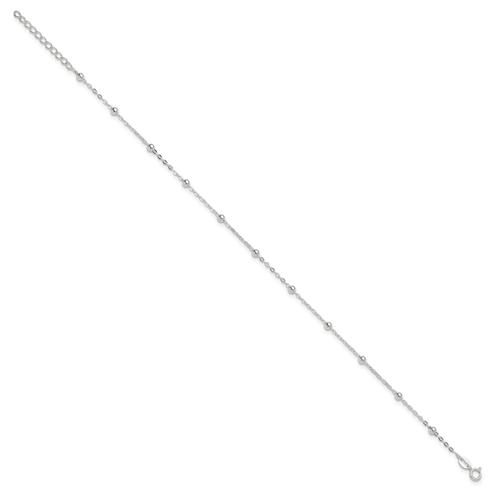 Sterling Silver 1mm Beaded Chain 9 inch Plus 1 inch Extender - Total 10 inch Anklet