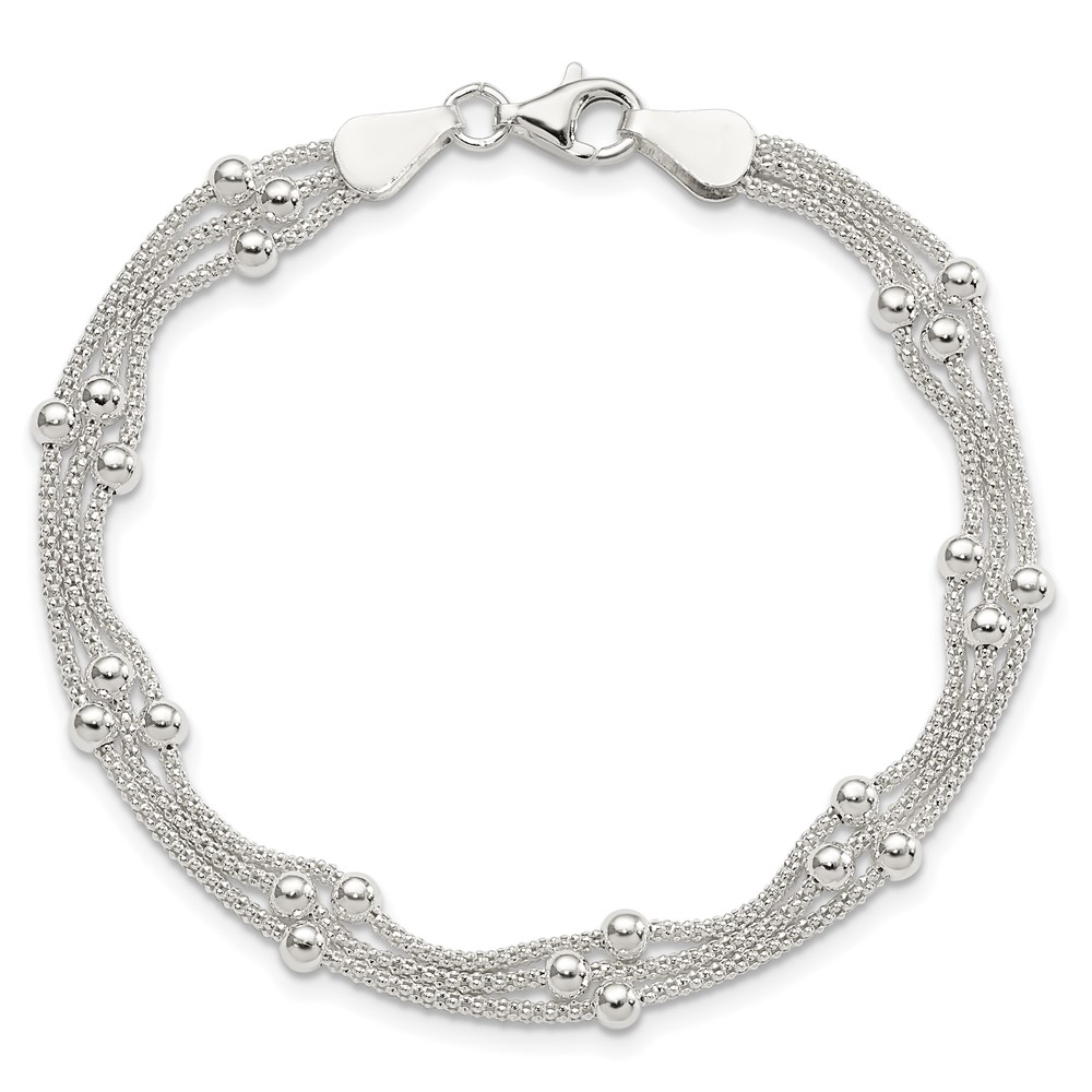 Sterling Silver Polished Beaded 3-strand Bracelet