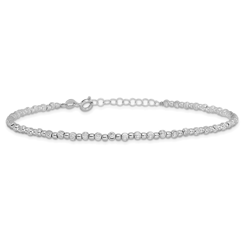 Leslie's Sterling Silver Rhodium-plated Beaded 9 inch Plus 1 inch Extender - Total 10 inch Anklet