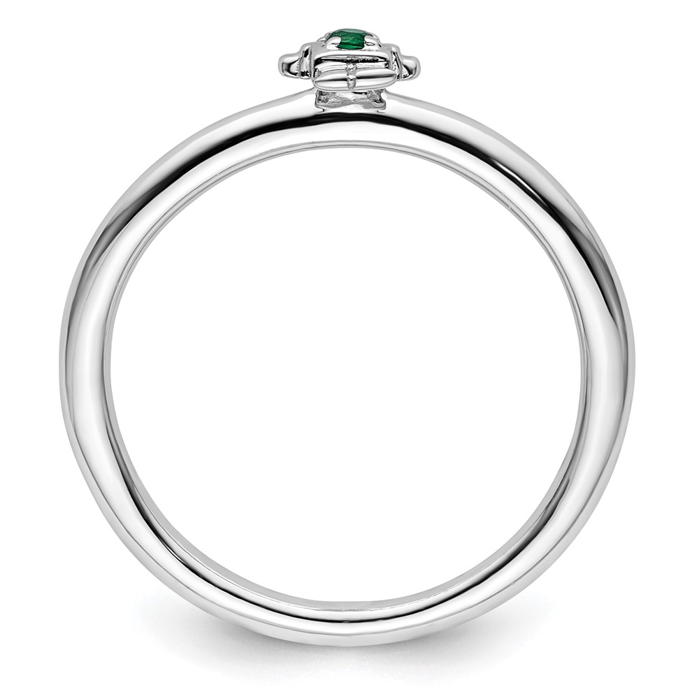 Sterling Silver Stackable Expressions Rhodium Cr. Emerald Boy Ring