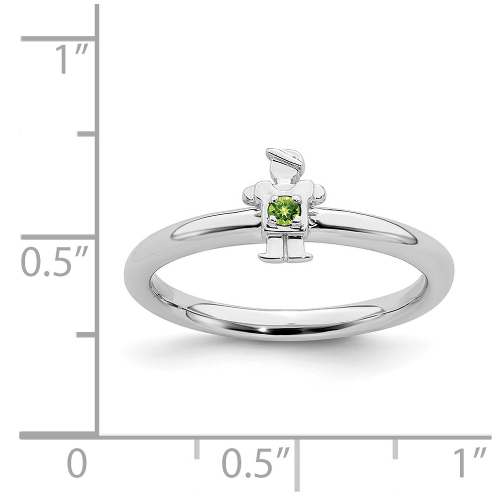 Sterling Silver Stackable Expressions Rhodium Peridot Boy Ring