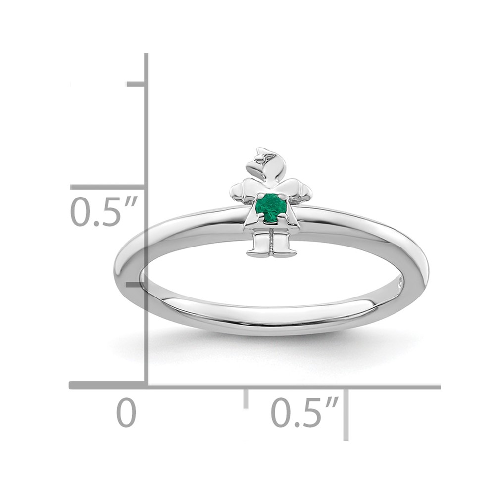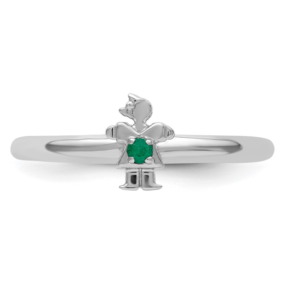 Sterling Silver Stackable Expressions Rhodium Cr. Emerald Girl Ring
