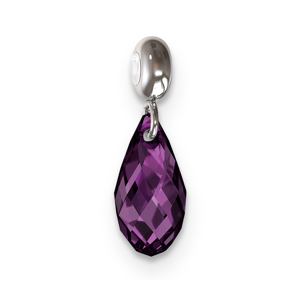 Sterling Silver Rhodium-plated MeMi February Teardrop Crystal Charm