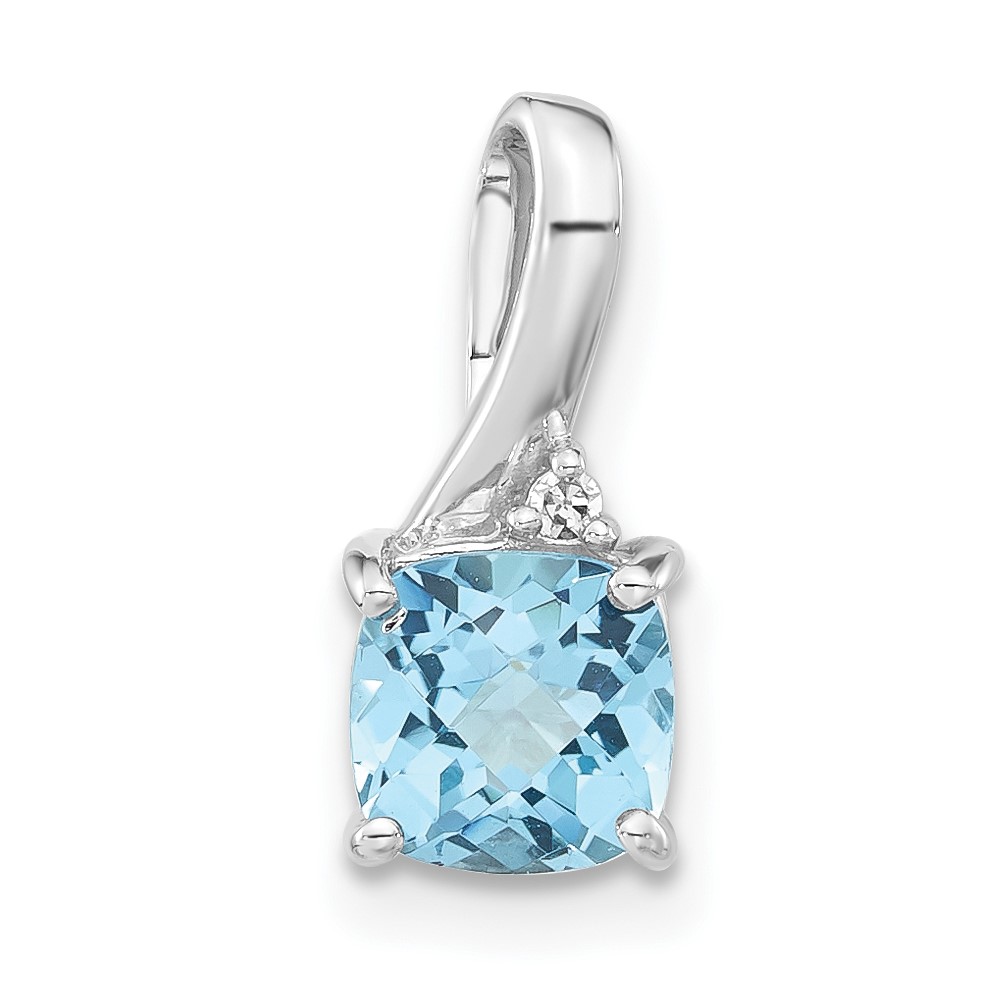 10k White Gold Checkerboard Blue Topaz & Diamond Chain Slide