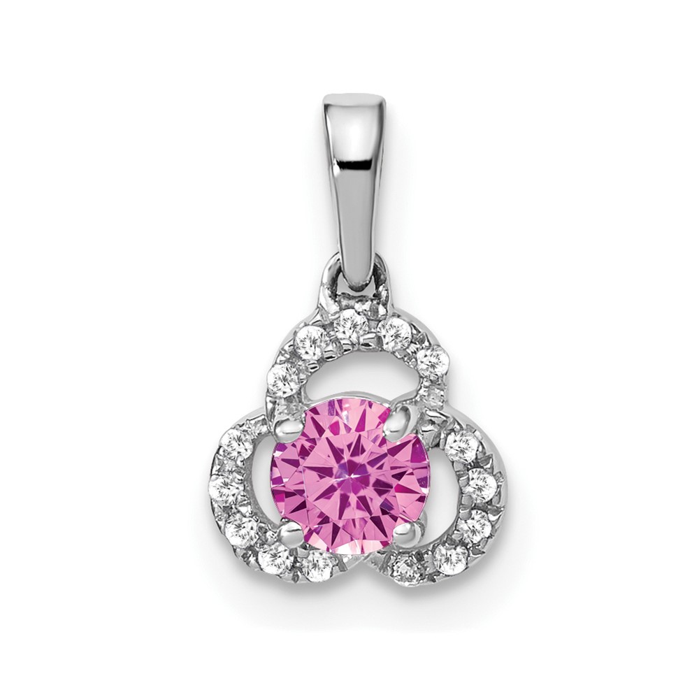 10k White Gold Created Pink Sapphire and Diamond Pendant