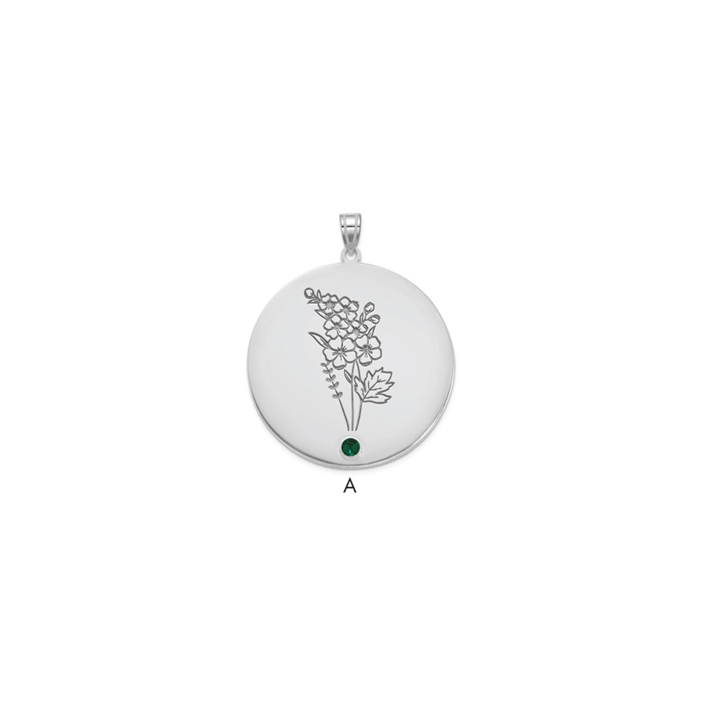 10k White Gold Circle w/1 Birth Flower and Birthstone Pendant