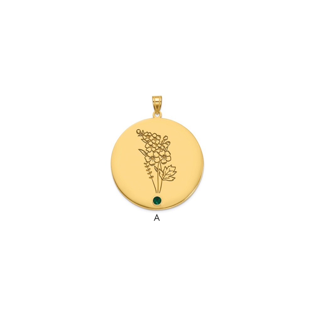 SS/Gold-Plated Circle w/1 Birth Flower and Birthstone Pendant