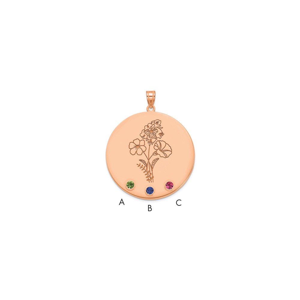 SS/Rose-plated Circle w/3 Birth Flower and Birthstone Pendant