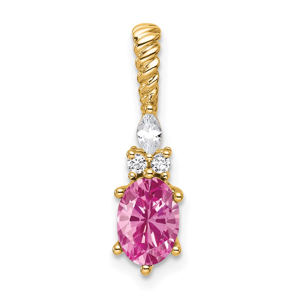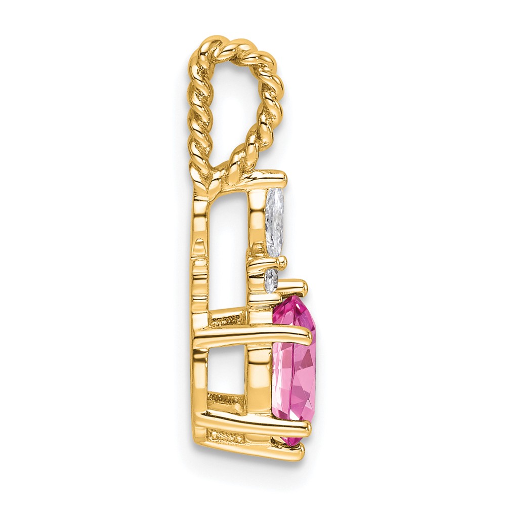 14K Diamond and 7x5 Oval October/Lab Created Pink Sapphire Twisted Chain Slide