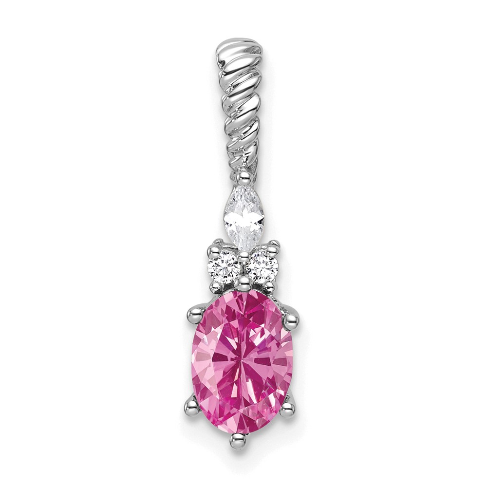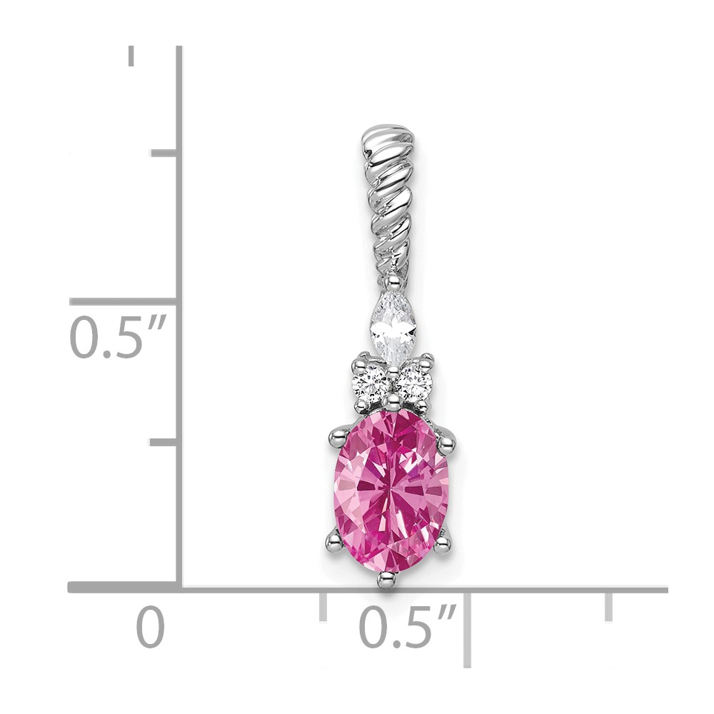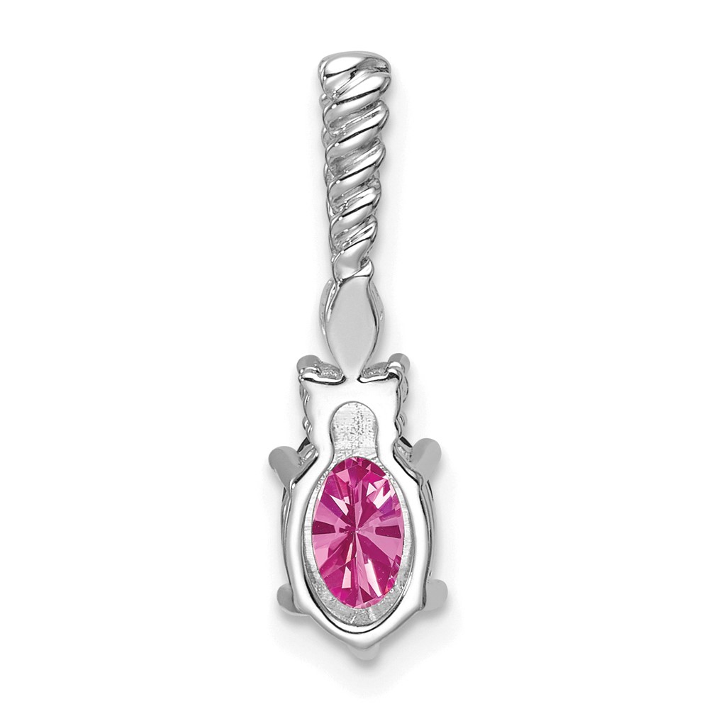 14K White Gold Diamond and 7x5 Oval October/Lab Created Pink Sapphire Twisted Chain Slide