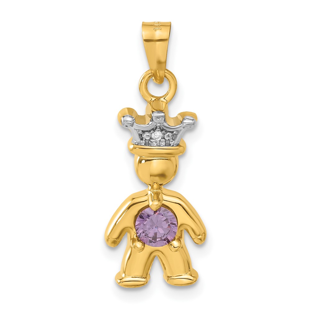 14ky Diamond and Synthetic February Birthstone Boy Pendant