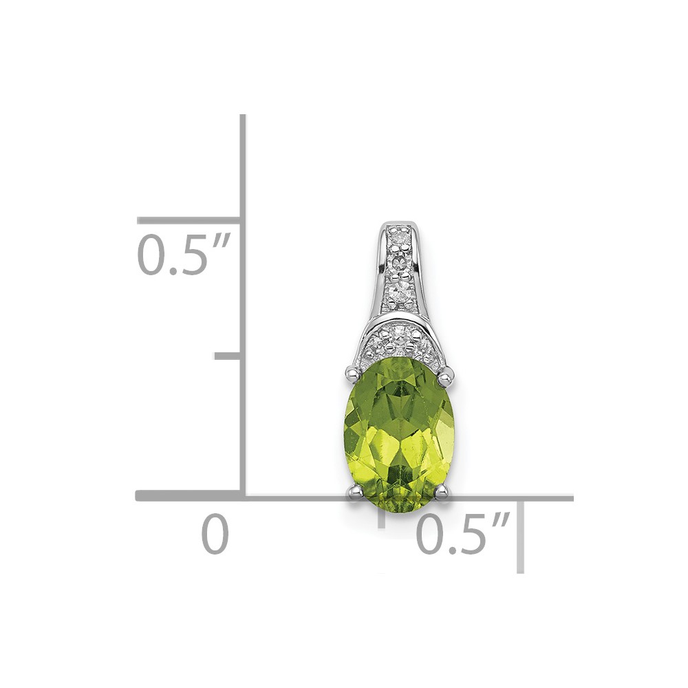 Sterling Silver Rhodium-plated Diamond and Peridot Oval Pendant
