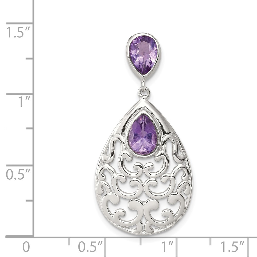 Sterling Silver Rhodium-plated Polished Amethyst Pendant