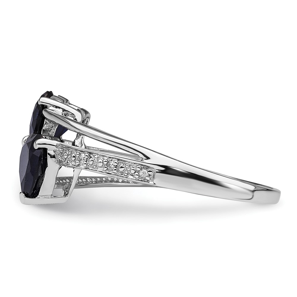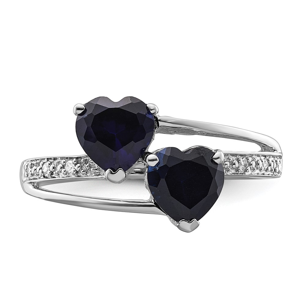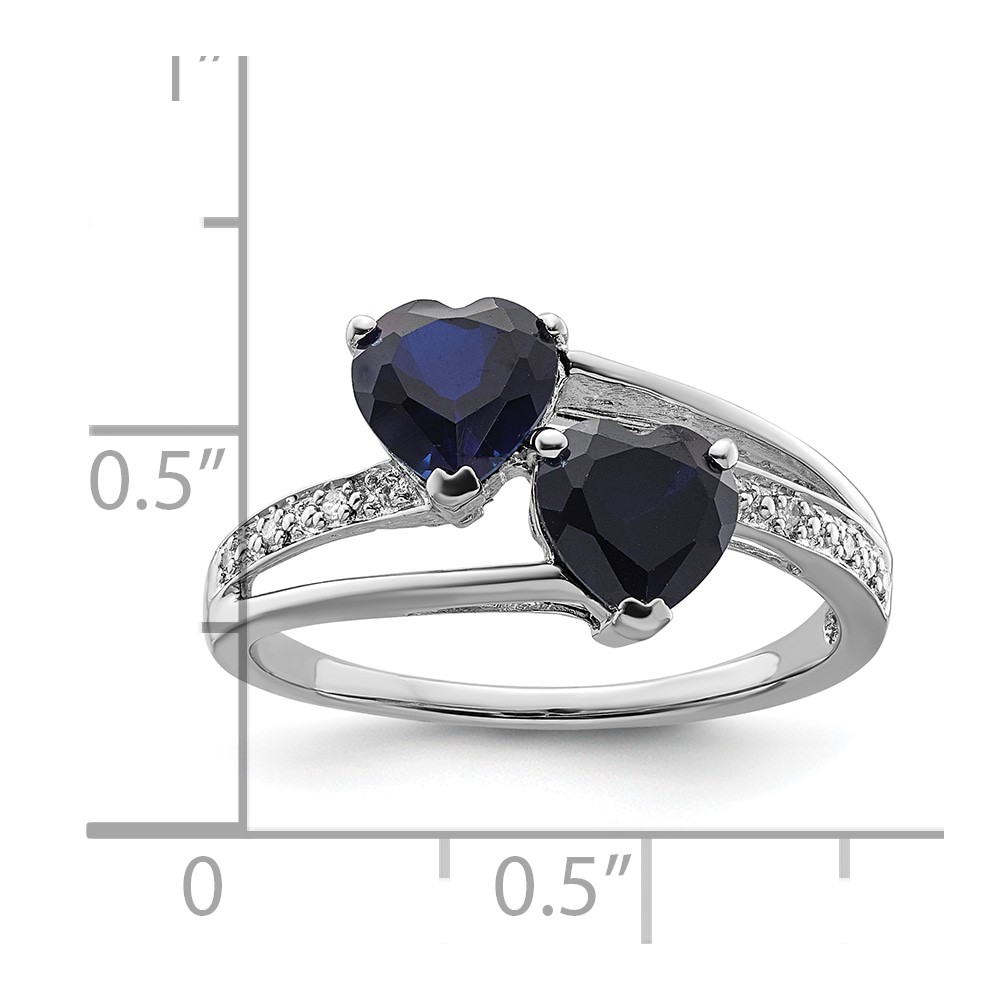 Sterling Silver Polished Created Sapphire & Diamond Double Heart Ring