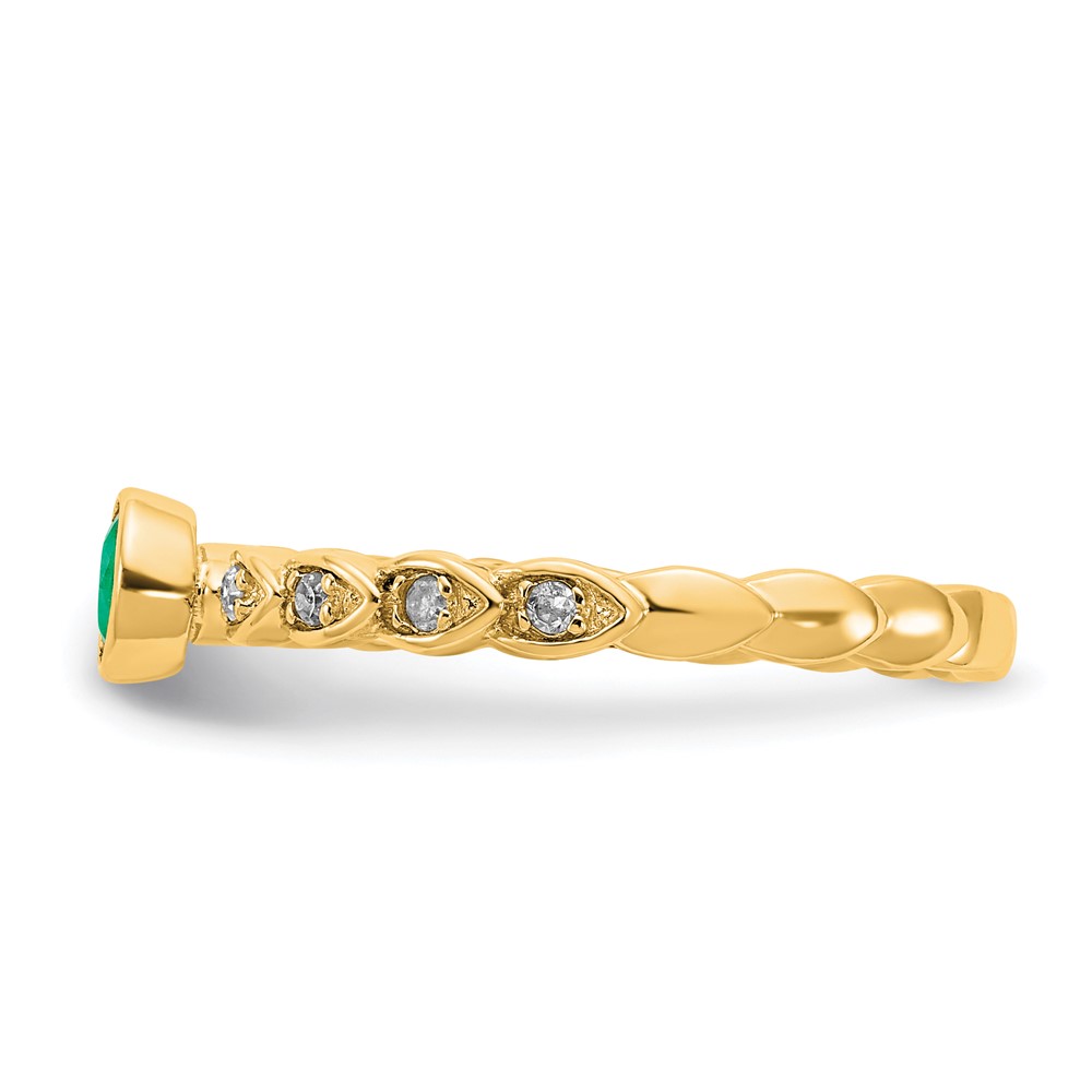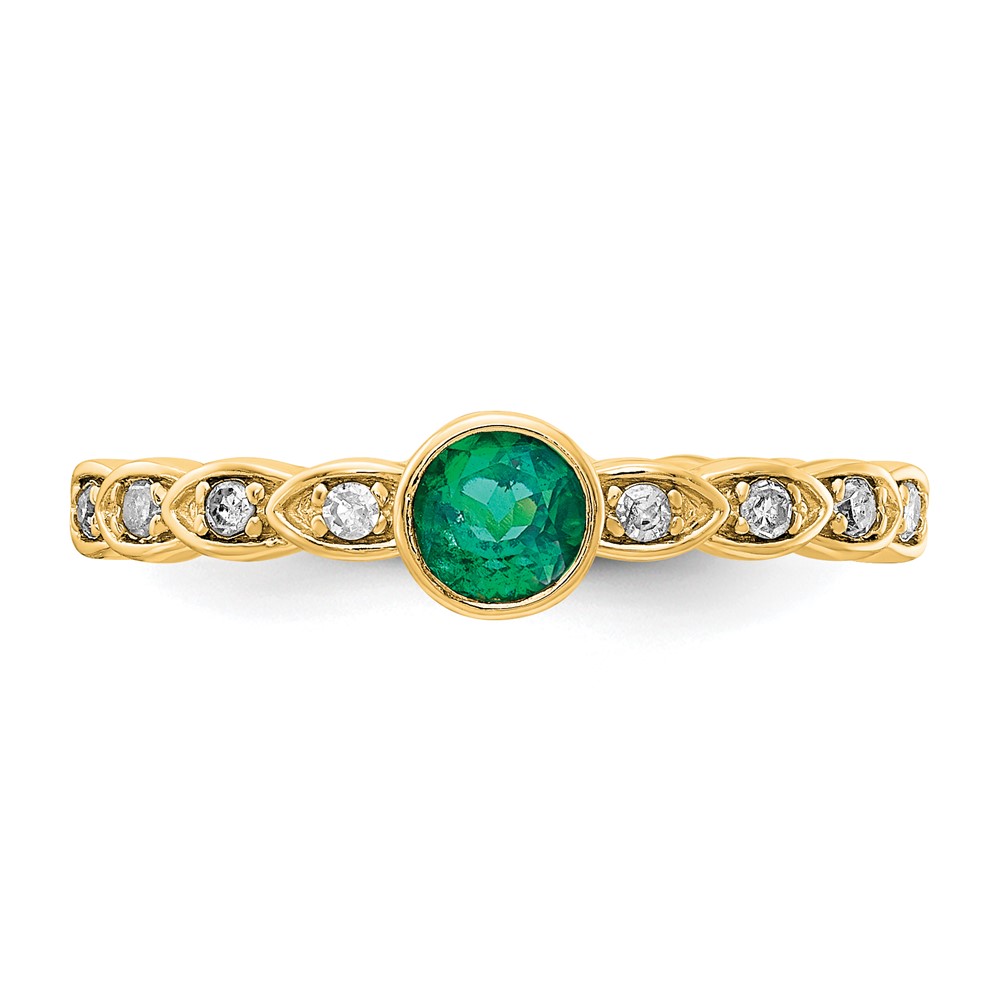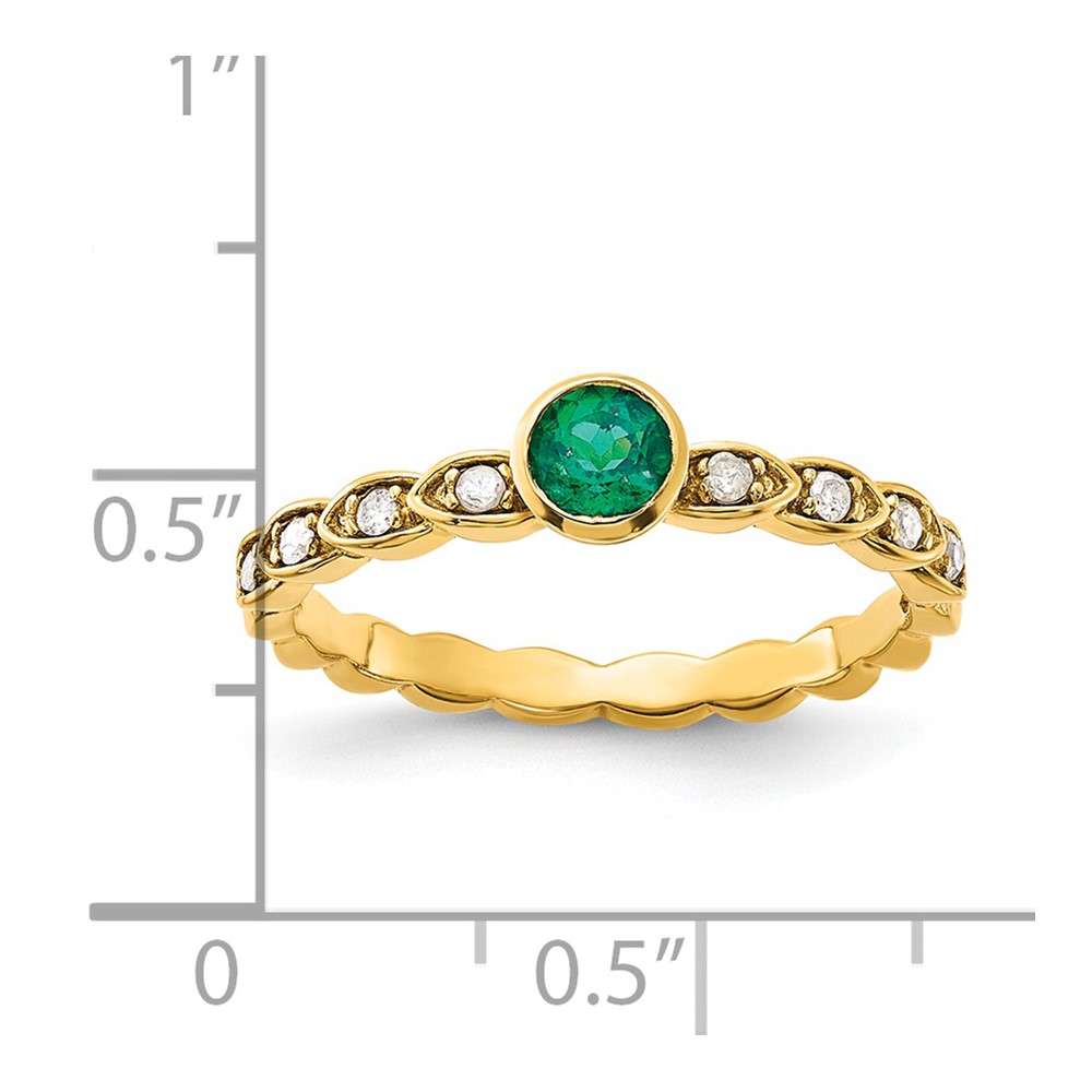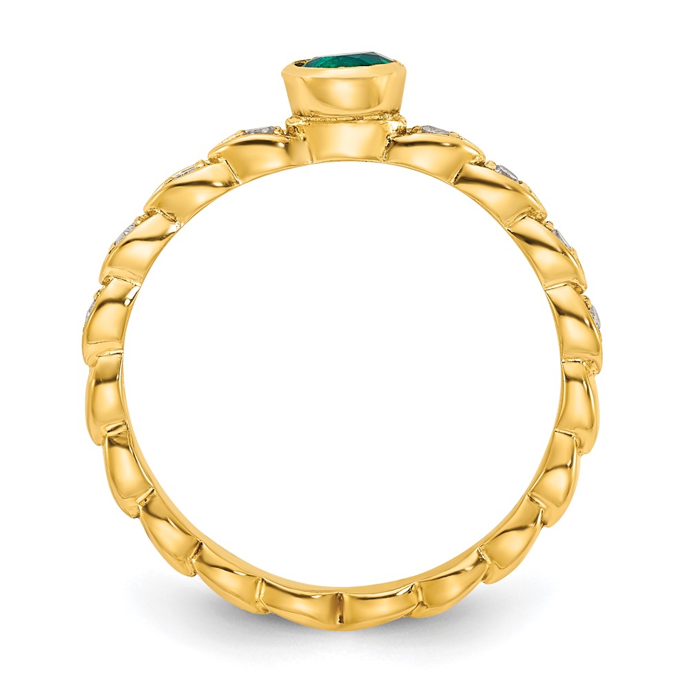 Sterling Silver Gold-tone Created Emerald and Diamond Ring