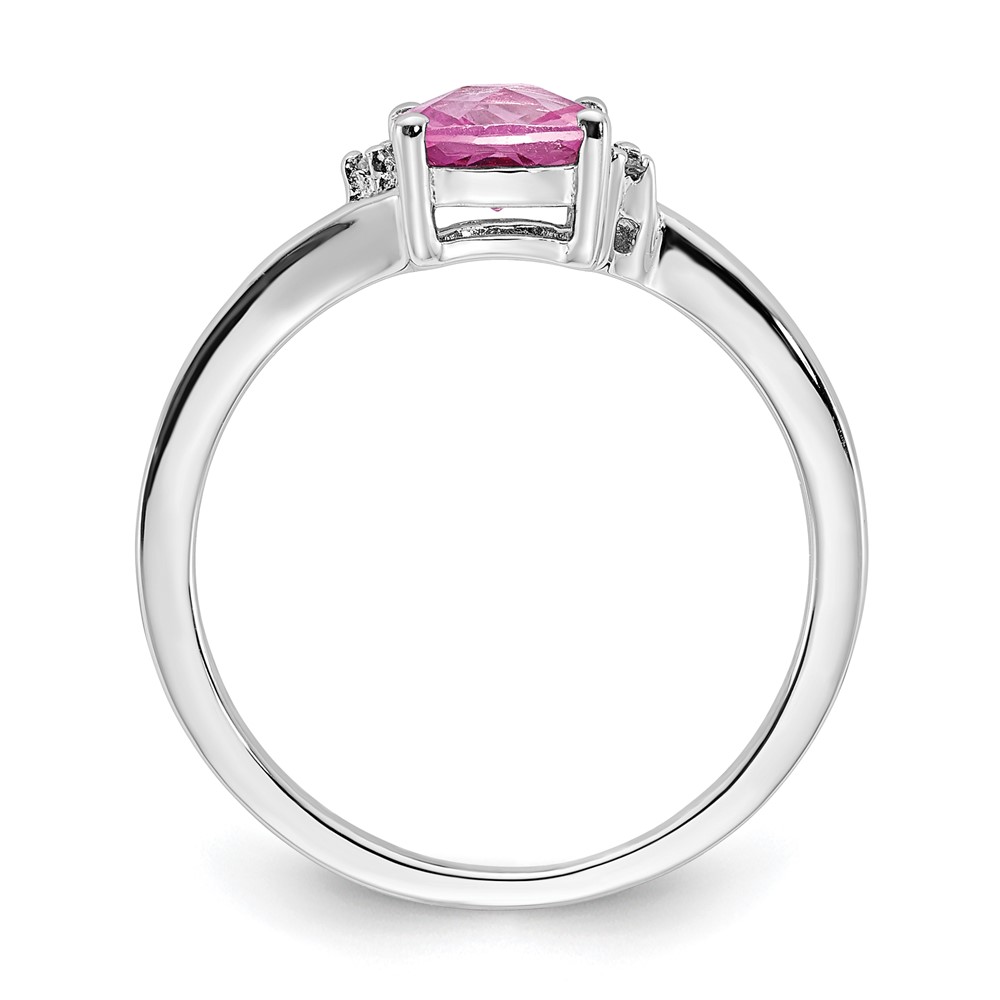 Sterling Silver Created Pink Sapphire and Diamond Ring