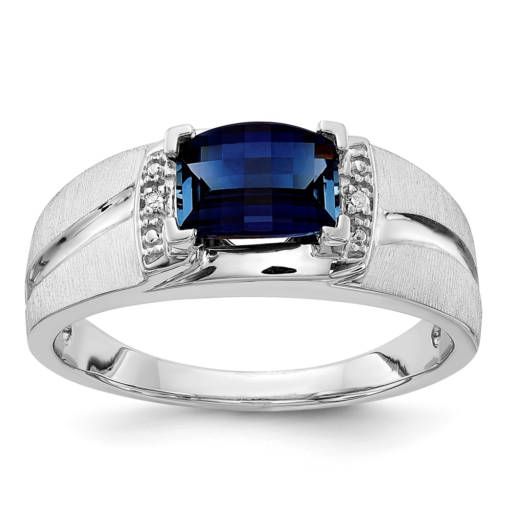 Sterling Silver Men's CR Sapphire & Diamond Ring